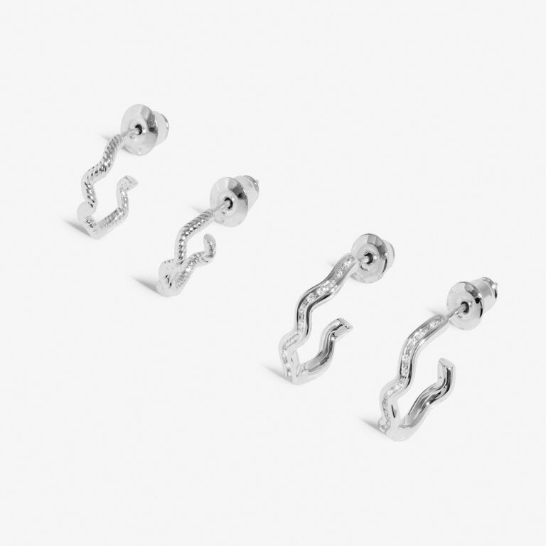 Soul Shine Wavy Rope Hoop Earring Stack In Silver Plating