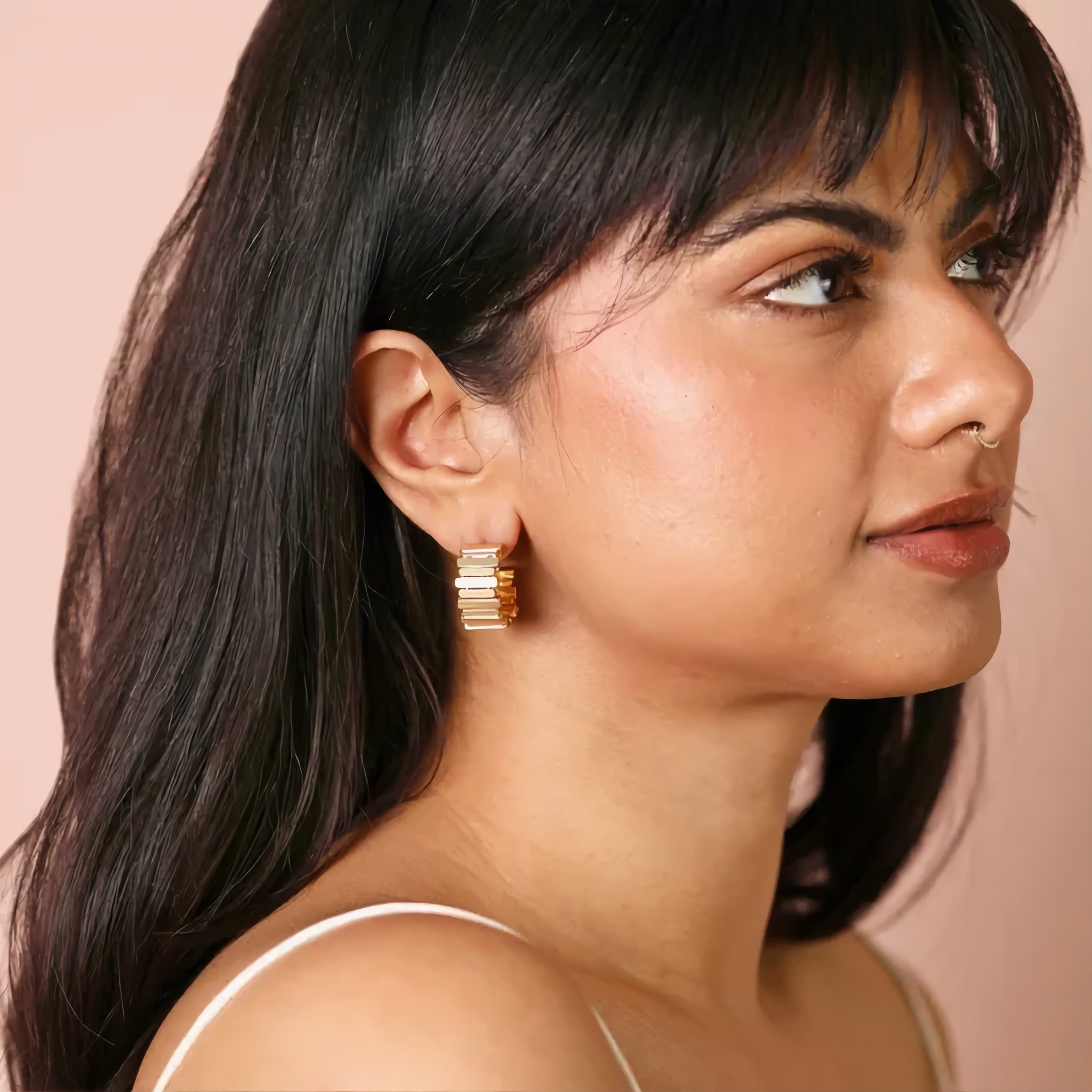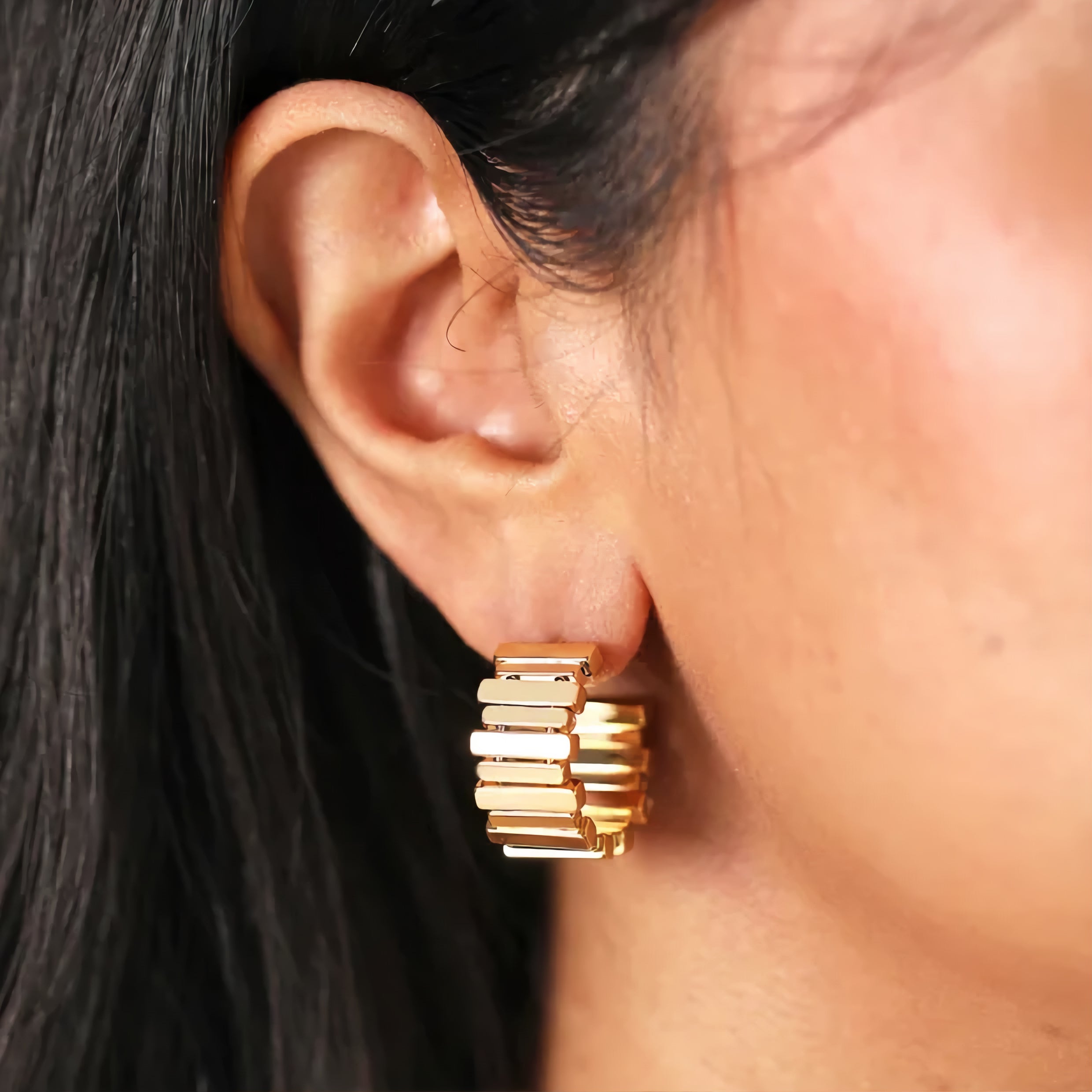 Asymmetrical Layered Bar Hoop Earrings in Gold