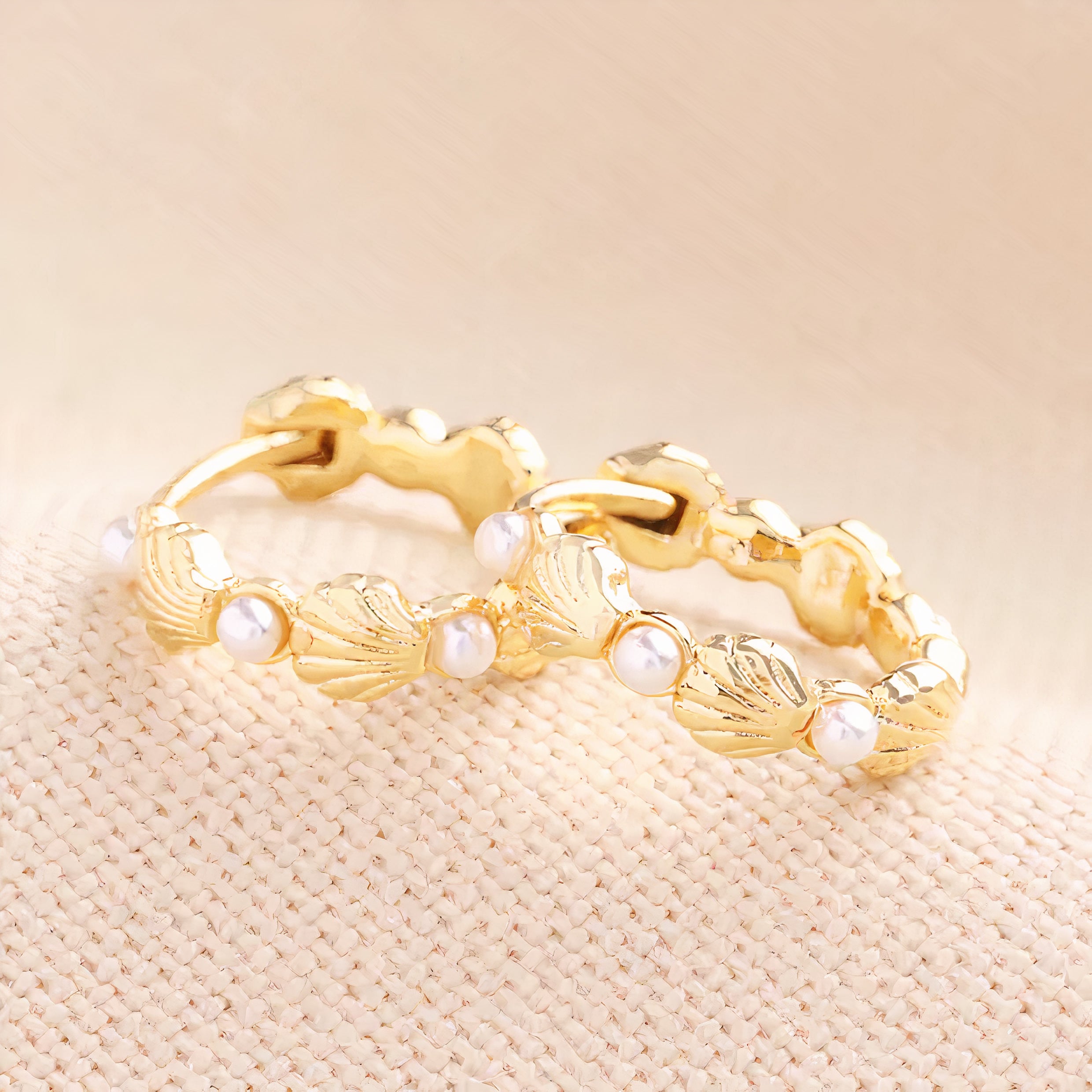 Pearl and Shell Gold Hop Huggie Earrings