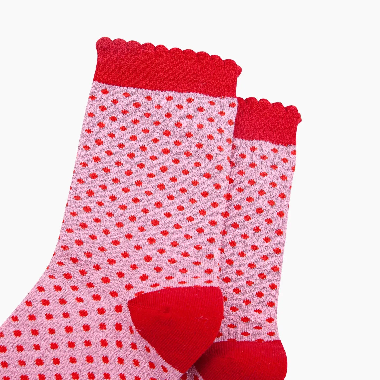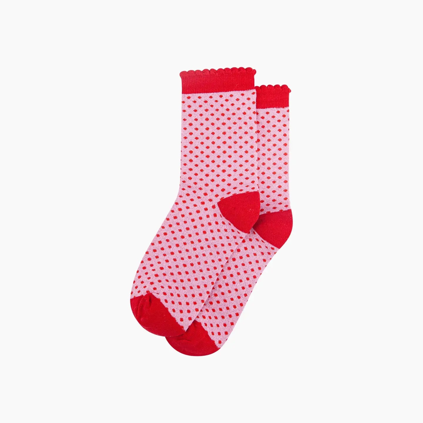 Polka Dot Cotton Glitter Socks in Pink/Red