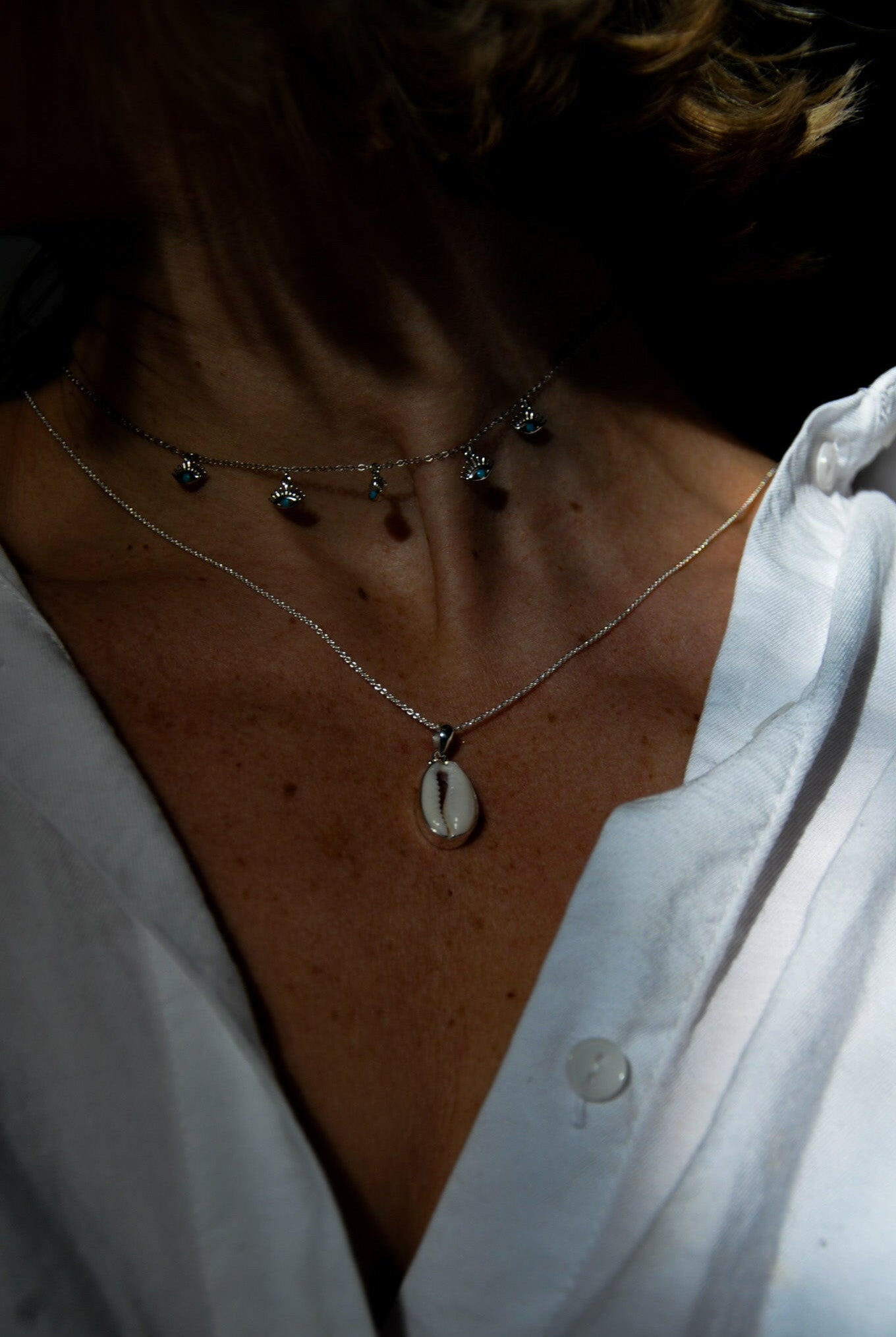 At Bon Bon we specialise in stocking a range of cowrie shell jewellery. This is sourced from brands such as Pineapple Island or pieces that we have found and sourced on our travels to Bali and afar. Cowire shells have multiple meaning and symbolism in different cultures and religions. They are often used to represent woman hood, the ocean and fertility. We love the cowrie shell for its beautiful organic form and its connection to the ocean.