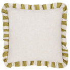 Linen Stripe Printed Ruffle Cushion – Linen / Olive
