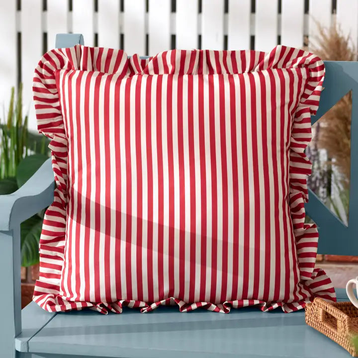 Millie Ruffle Striped Outdoor/Wipe clean Cushion Candy Red