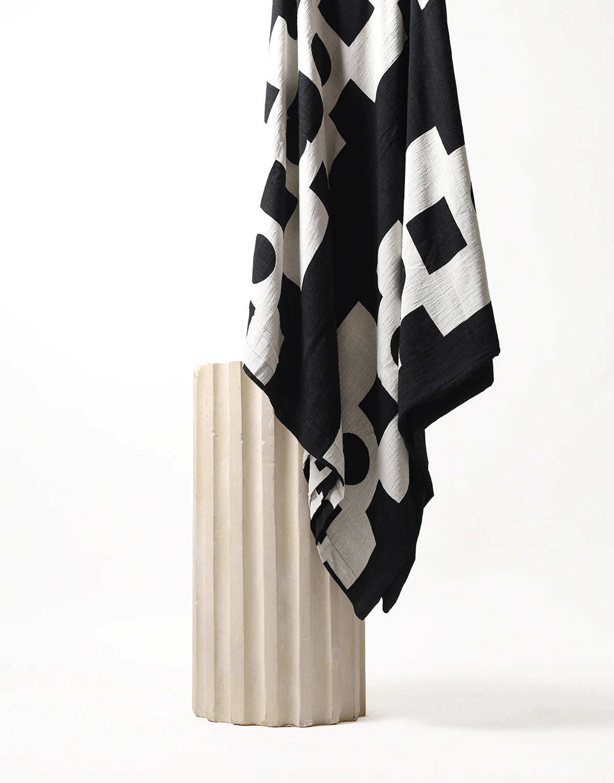 The Marguerite Coverlet is hand made by Indonesian artisans using traditional Resistance Printing techniques. The lightweight linen blend is textured and soft, with a calm and neutral base to compliment the printed design.