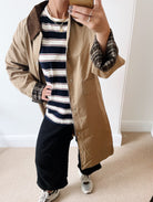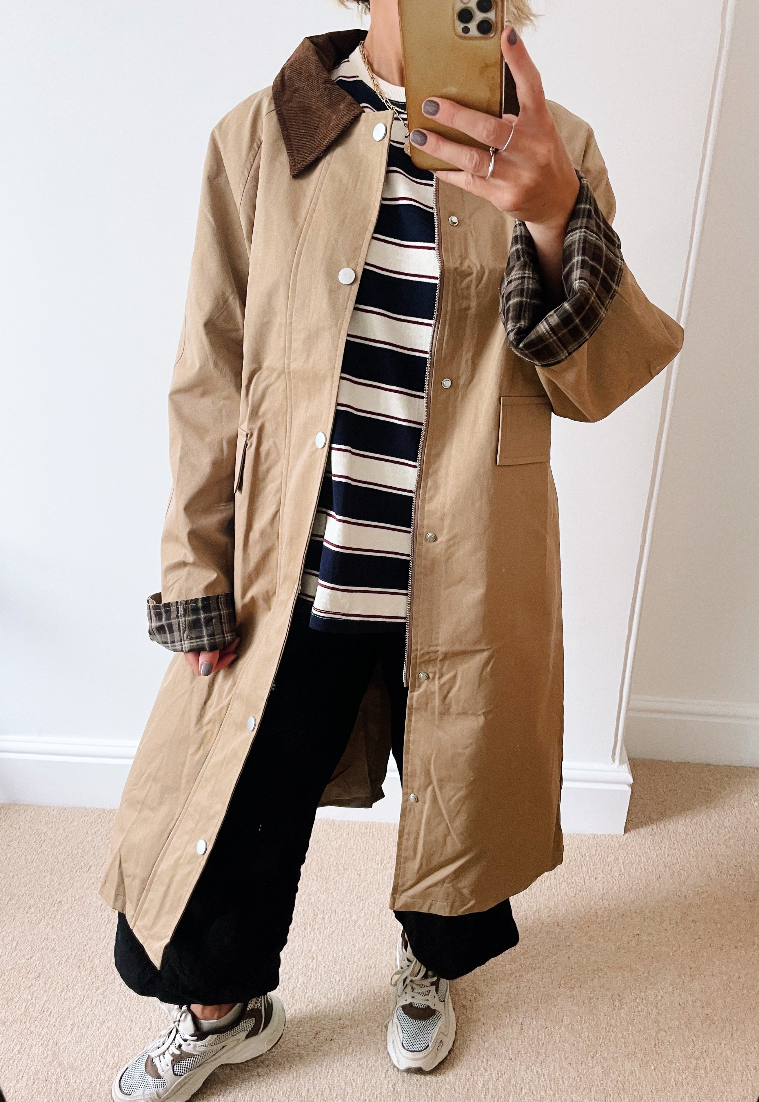Fully lined in a heritage-inspired check, it's perfect for turning back the cuffs or popping the collar to reveal a subtle contrast detail. Finished with statement front flap pockets for added practicality and charm, this coat is the perfect outerwear piece to carry you through the season in style.