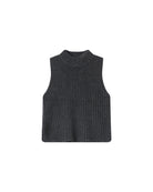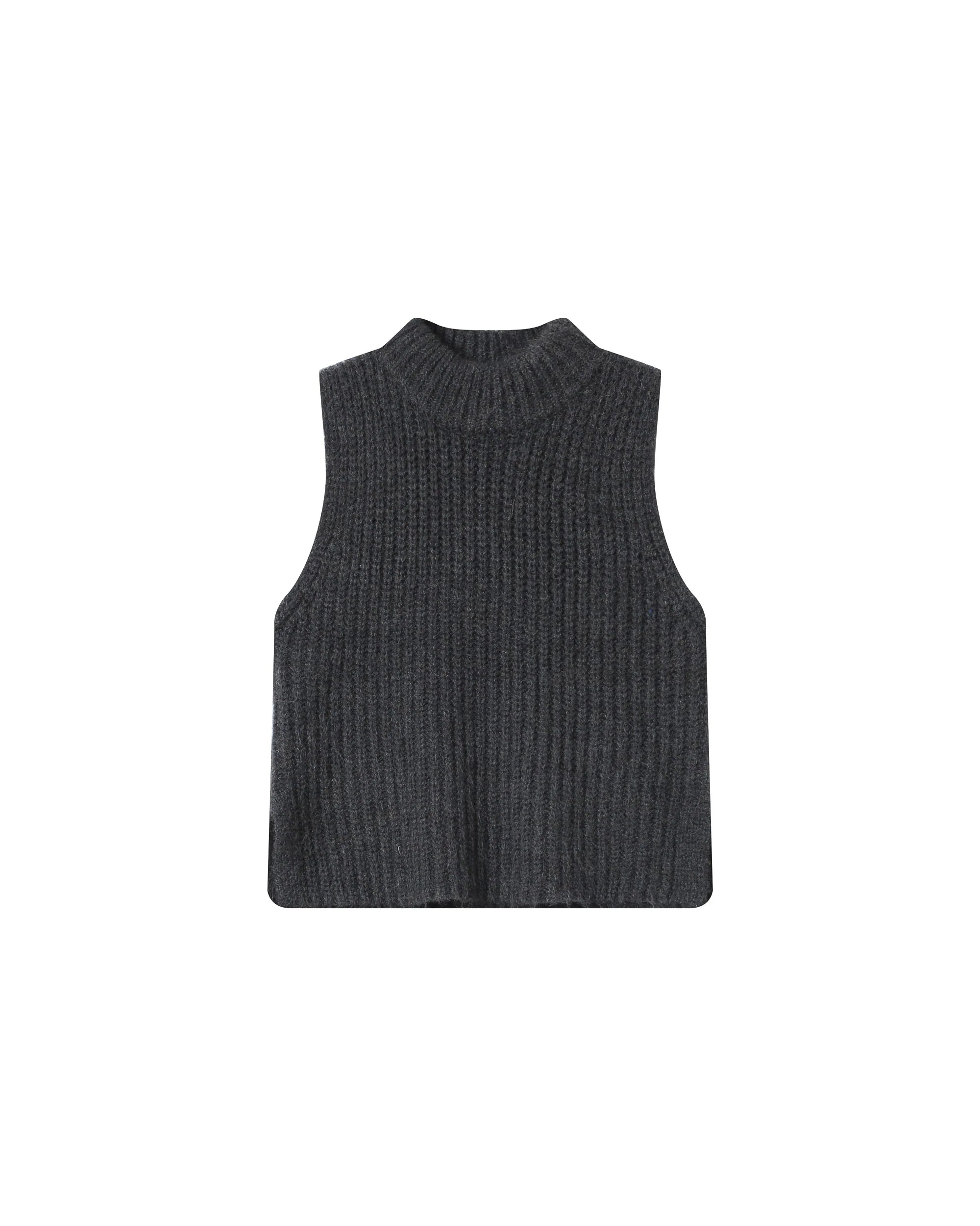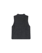 Sleeveless sweater in a recycled polyester, wool, and alpaca blend