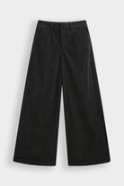 Featuring a very high waist that sits above the hips, these trousers include belt loops, Italian front pockets, and patch pockets at the back for a structured, tailored finish. The zipper closure with a hidden hook ensures a sleek silhouette, while the wide-leg cut flares gracefully for a flattering ’70s-inspired look.