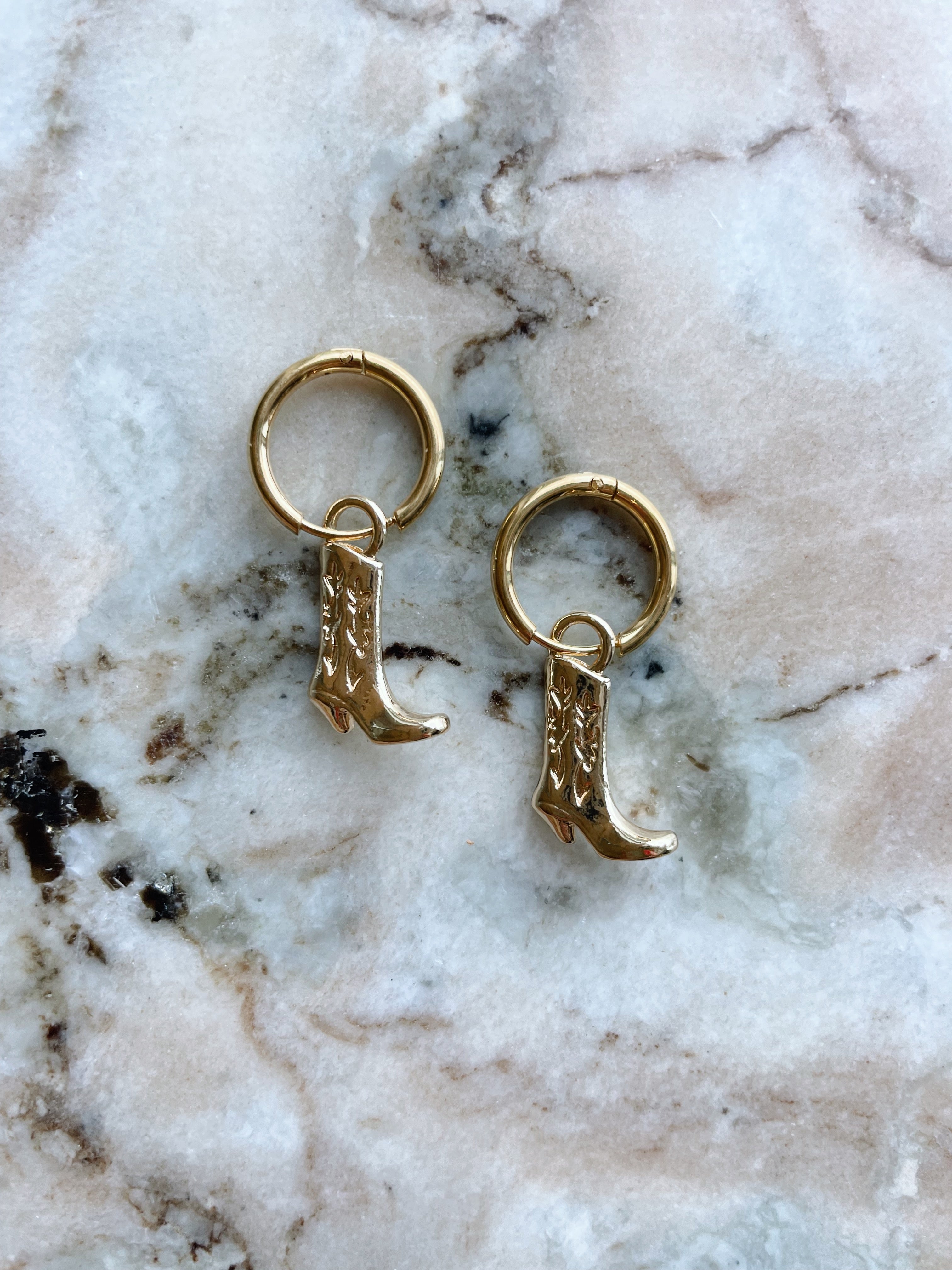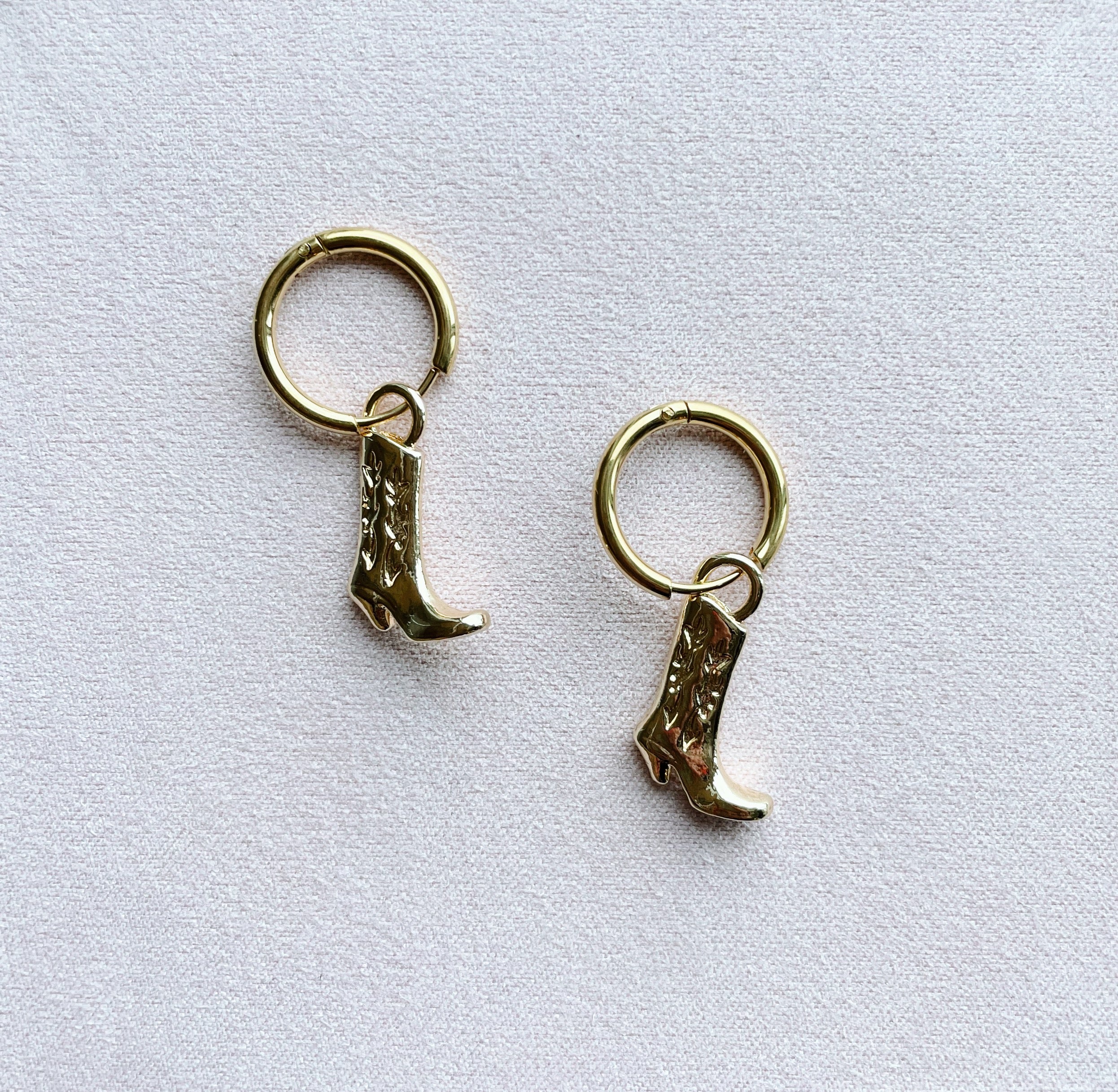 Gold Cow Girl Boots Earrings