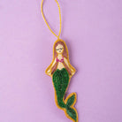 Inspired by the enchanting tales of folklore, superstition, and myth, our mermaid decoration captures the classic beauty of these mythical sea creatures. Crafted in India from soft cotton fabric and filled with recycled plastic, this elegant piece is adorned with intricate metal embroidery, delicate cotton thread, and sparkling glass beads. A whimsical and eco-friendly addition, it’s perfect for your festive tree—or as a charming accent all year round.