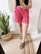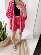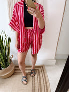 Refresh your summer wardrobe with these beautifully lightweight shorts, designed in a breezy blend of red and pink stripes. Crafted from soft, breathable cotton gauze, these natural fibre shorts are perfect for warm weather, keeping you cool and comfortable all