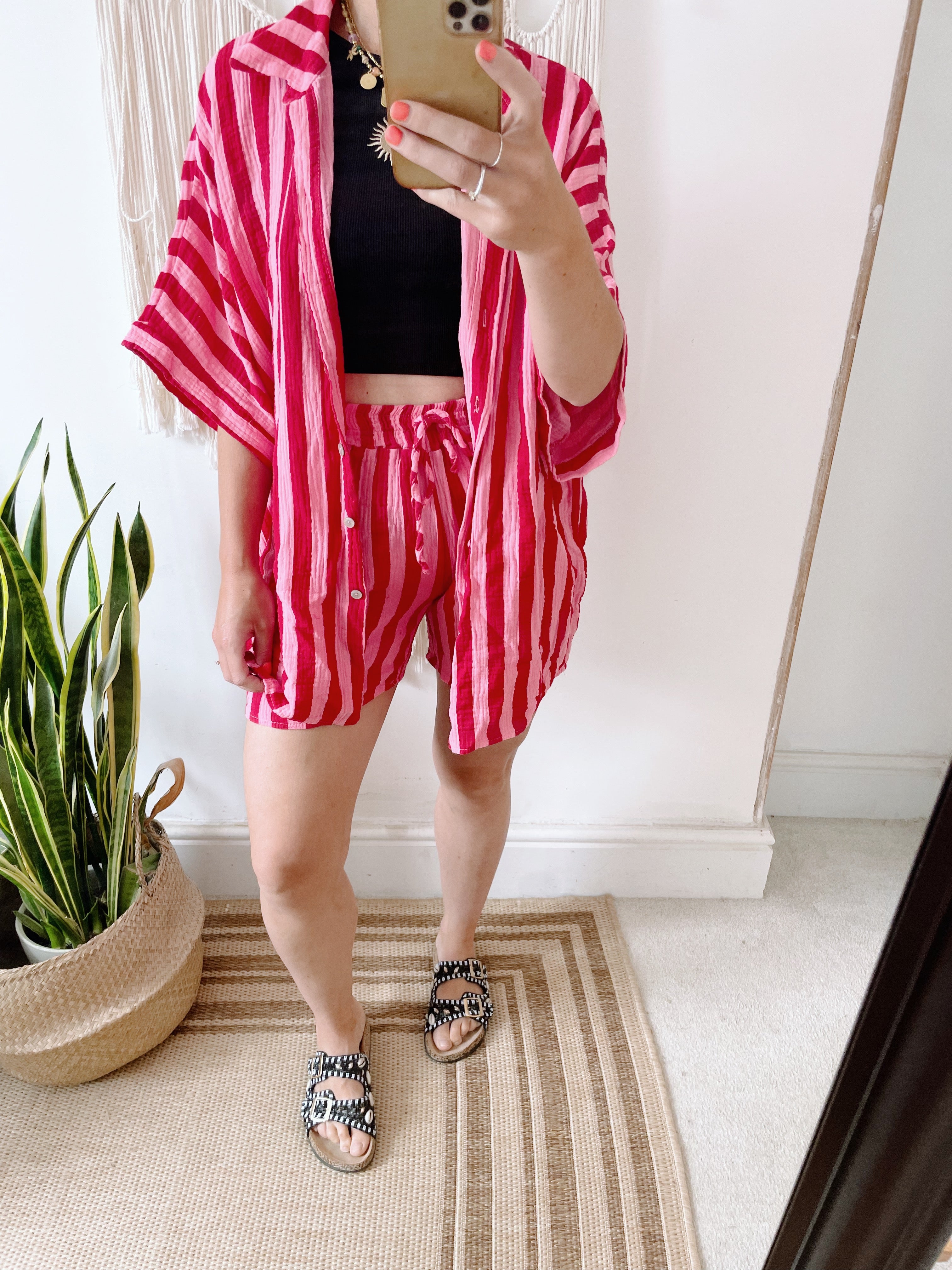 Red and pink shorts Cotton Gauze Shorts – Adjustable Waistband & Pockets