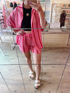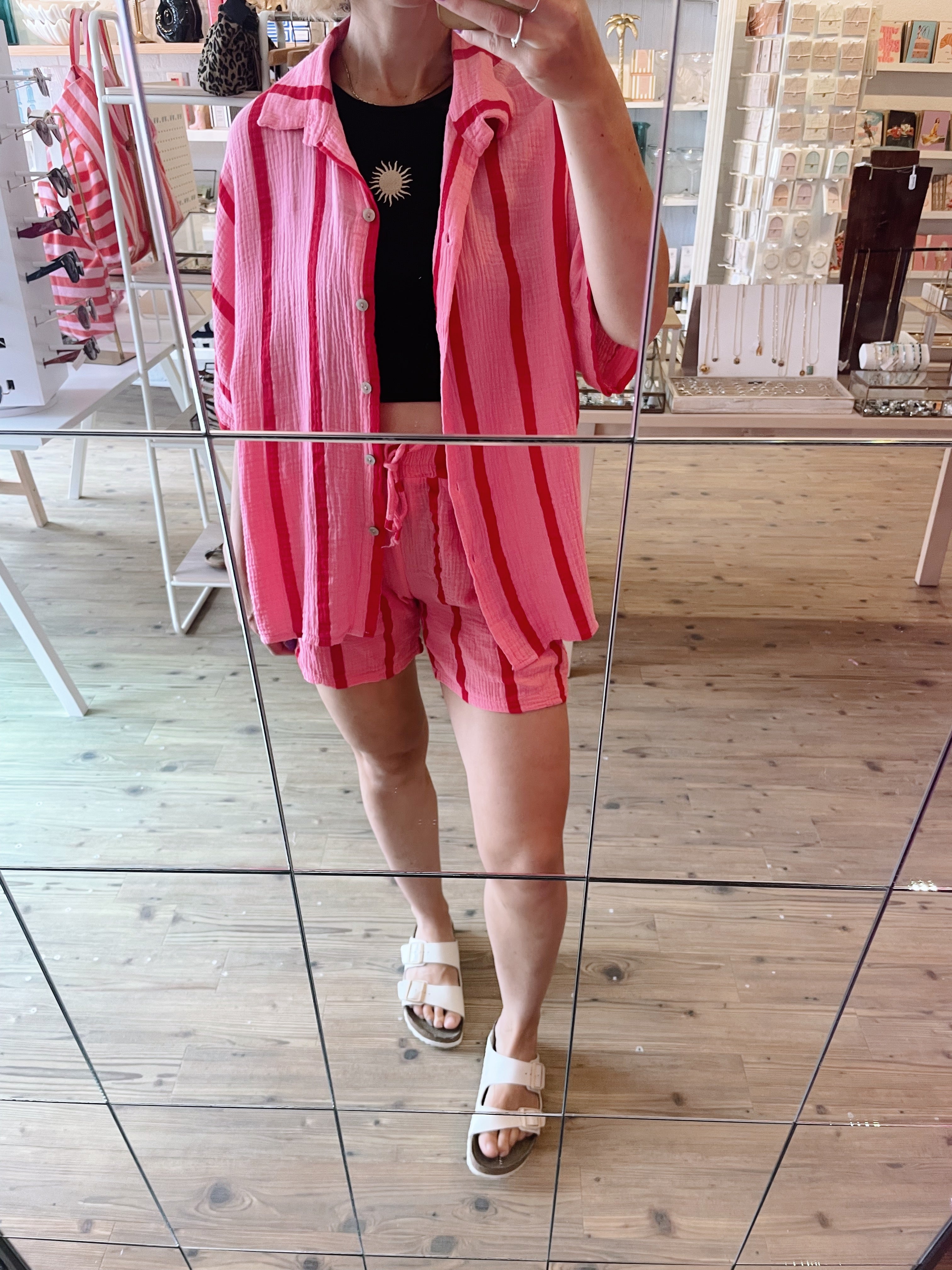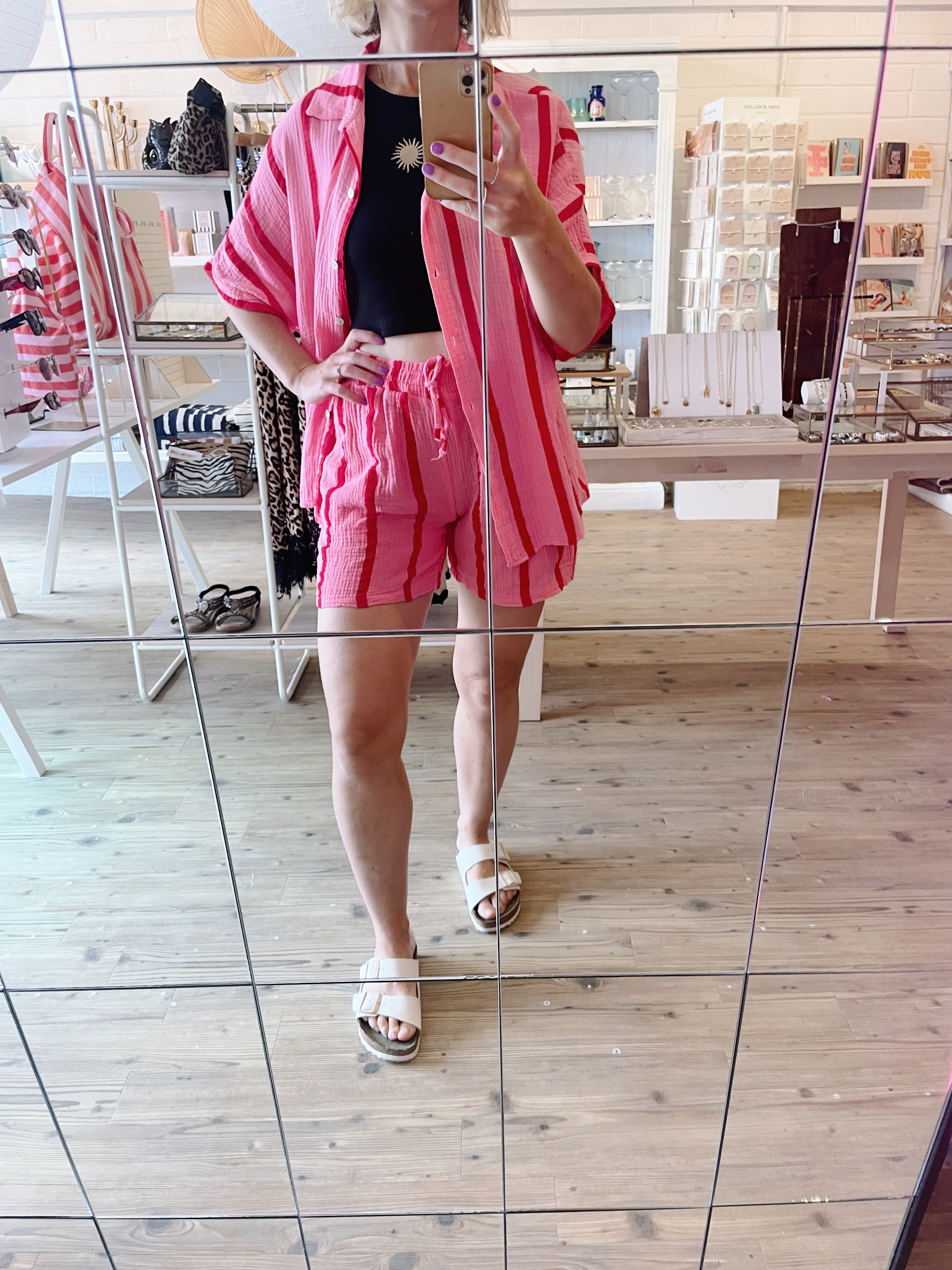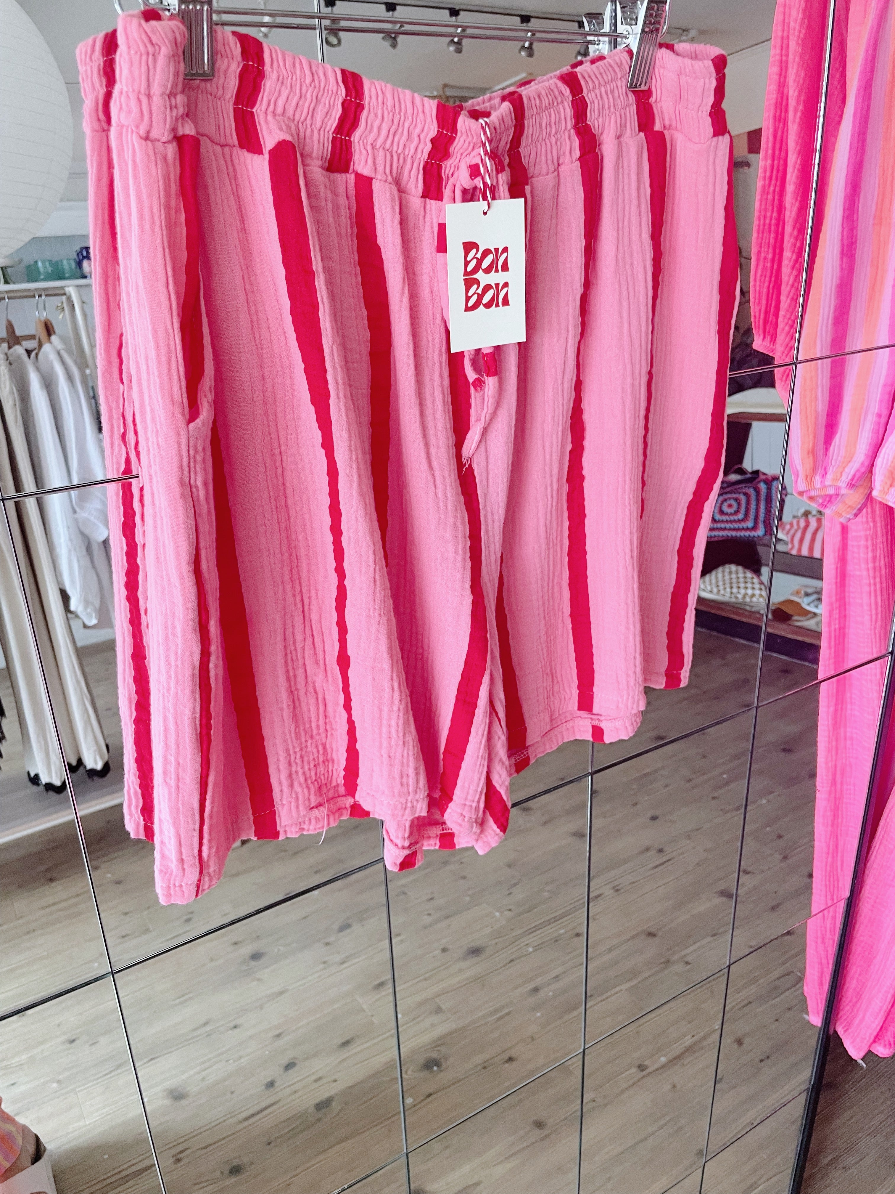 Refresh your summer wardrobe with these beautifully lightweight shorts, designed in a breezy blend of red and pink stripes. Crafted from soft, breathable cotton gauze, these natural fibre shorts are perfect for warm weather, keeping you cool and comfortable all