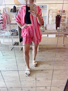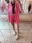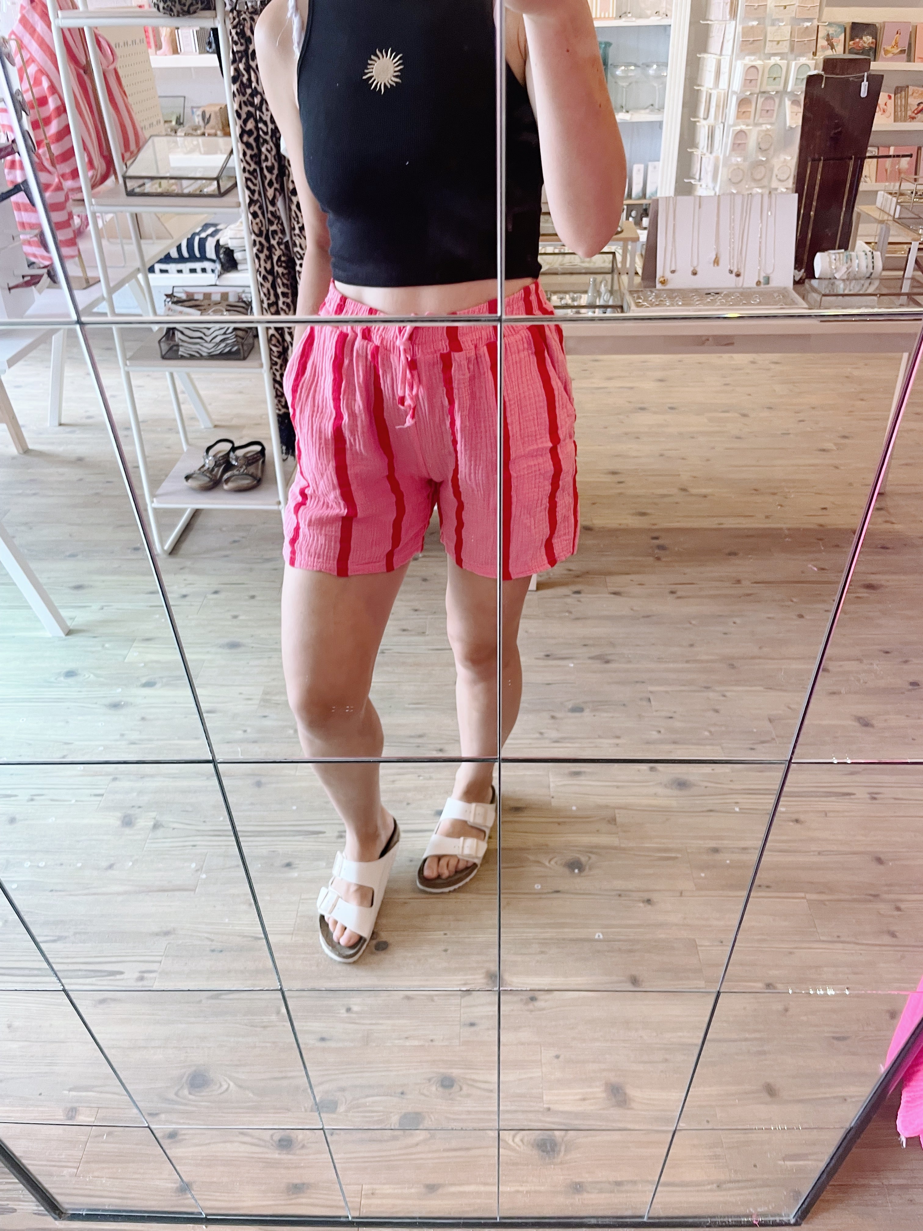 Red and pink shorts Cotton Gauze Shorts – Adjustable Waistband & Pockets